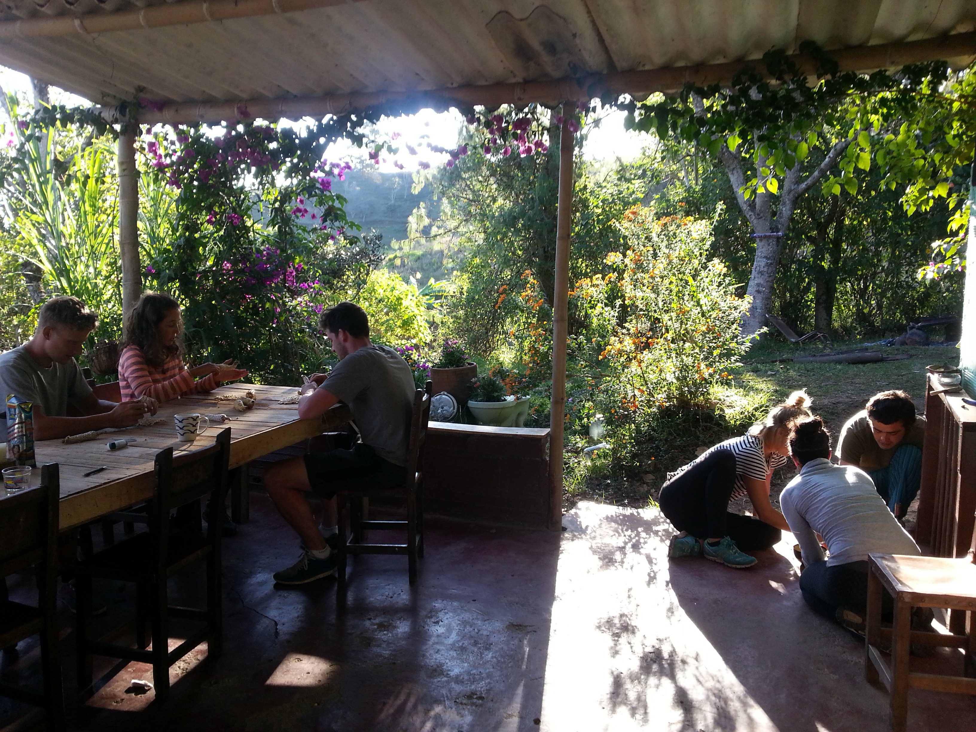 Há dias de leitura interminável numa hamaca. “Amor em Tempo de Cólera” ao som de Mercedes Soza, balidos de cabra, cacarejos de galinhas e o vento através das árvores. Dias de despedir da Gloria às 6 da manhã, e de histórias de abuelitas resistentes, que persiguem ladrões com catanas nas mãos, e que vieram visitar os “netos malucos”. Dias de fazer tintos para todos, e comer arroz com frijoles, feitos por mães saudosas que vêm também visitar. Domingos com familias alheias, felizes de partilhar comidas e conversas.
