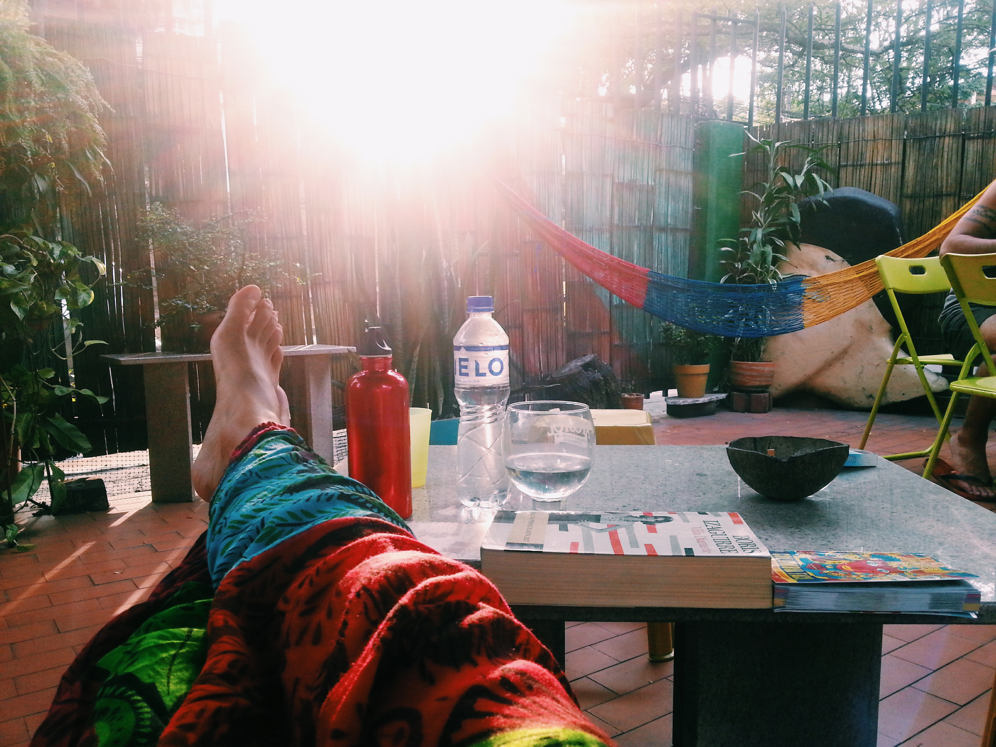 Sabe bem saber quais as funções que tenho de cumprir no meu turno no hostel e que entre recolher o pequeno almoço, passar revista às áreas comuns, fazer inventários, abrir a porta ou fazer check-ins posso ler o meu livro, e/ou escrever, e/ou beber café e/ou cerveja e conversar durante horas com pessoas que já me vão conhecendo.