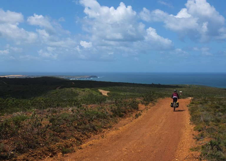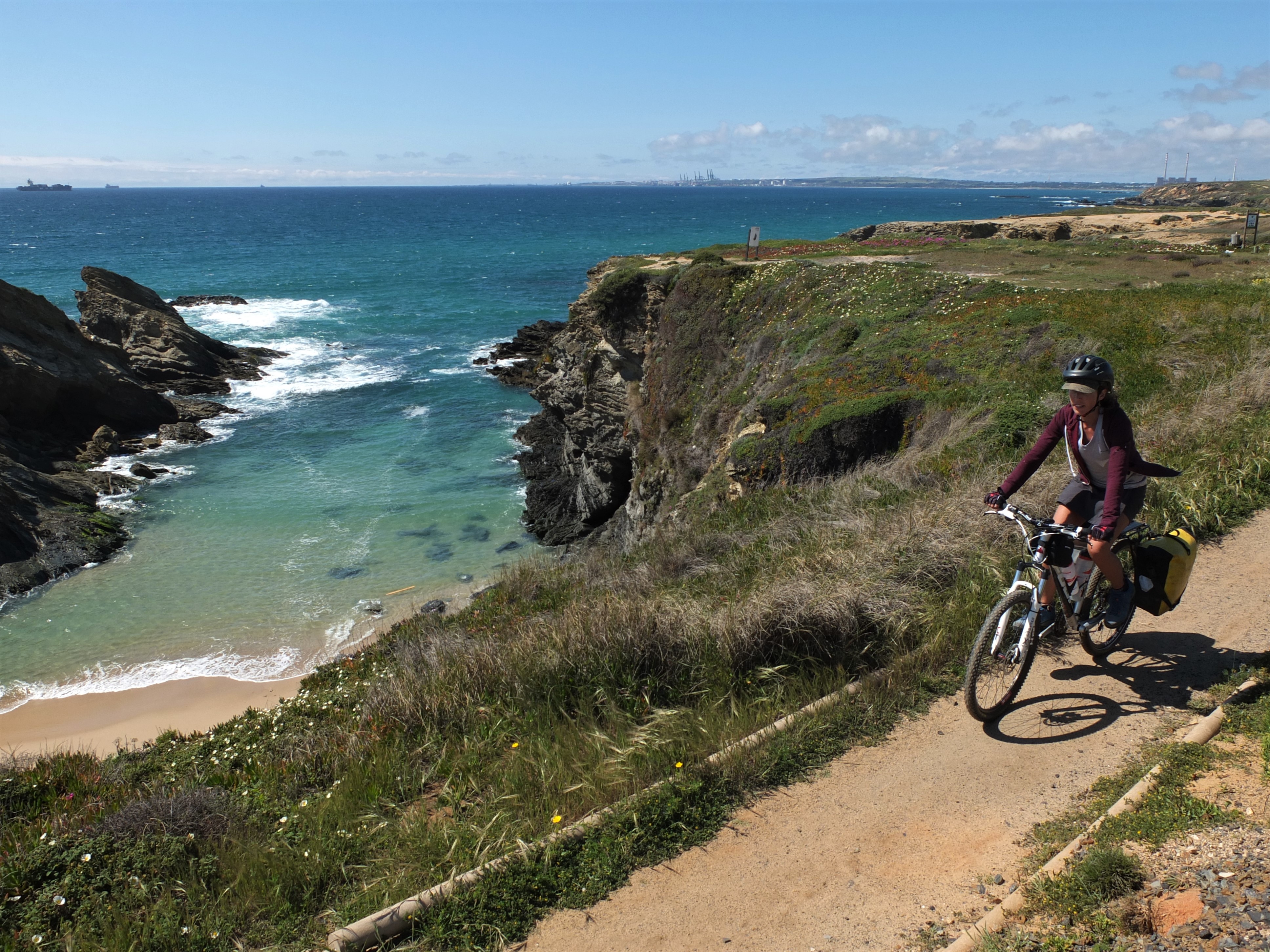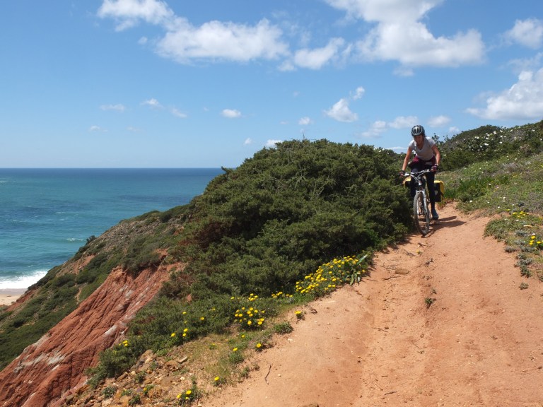 Chegámos às falésias e o azul entrava pelos olhos dentro. A caminho da Carrapateira, onde almoçámos, desci por trilhos com pedras que não me atreveria a descer em cima da bicicleta uns dias antes. Devagar, muito devagar, com cara de pânico de quando em vez, mas desci.