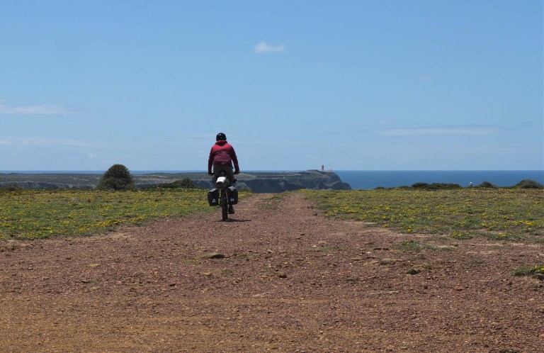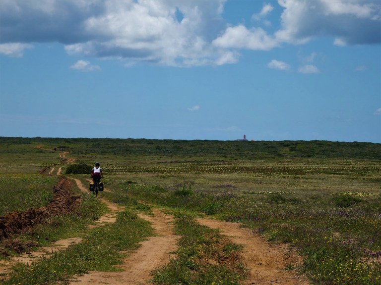 Enquanto eu respirava fundo várias vezes, o Borja ia à frente. Na minha cabeça, a pedalar alegremente porque “os galegos não têm medo de se molhar”. Mas se calhar a parte do alegremente foi só na minha mente rabugenta da chuva, que não parou até chegarmos a Aljezur.