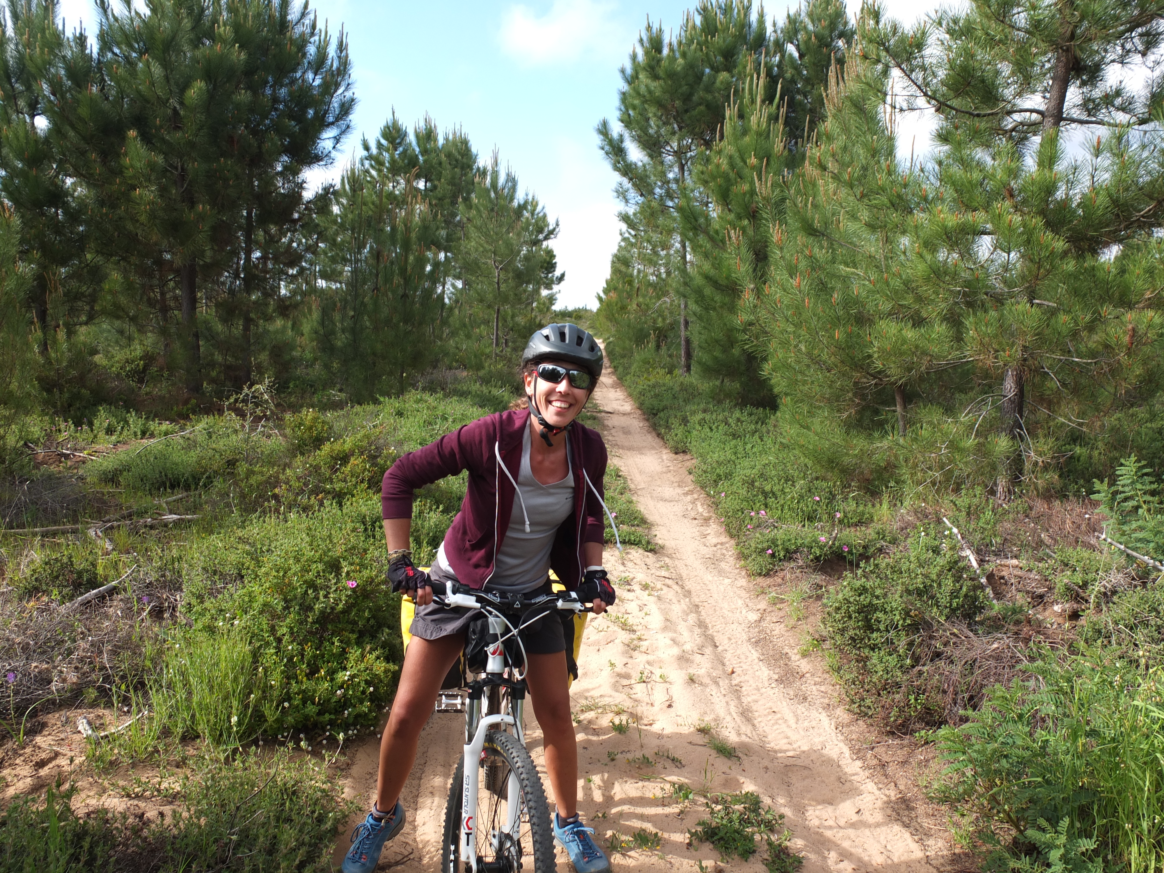 Sair dos lençóis foi duro. Começar a rota a empurrar a bicicleta no empedrado com uma inclinação de 20% também não era auspicioso, mas pelo menos não chovia. E não é que, apesar do humor matinal, das dores no rabo, dos dedos da mão direita a ficar dormentes de vez em quando, o quarto dia foi um dos meus preferidos? Subimos e descemos por trilhos no meio de pinheiros, o chão de terra vermelha, ninguém à vista, eu a fazer slalom entre as poças, já (quase) sem travar.