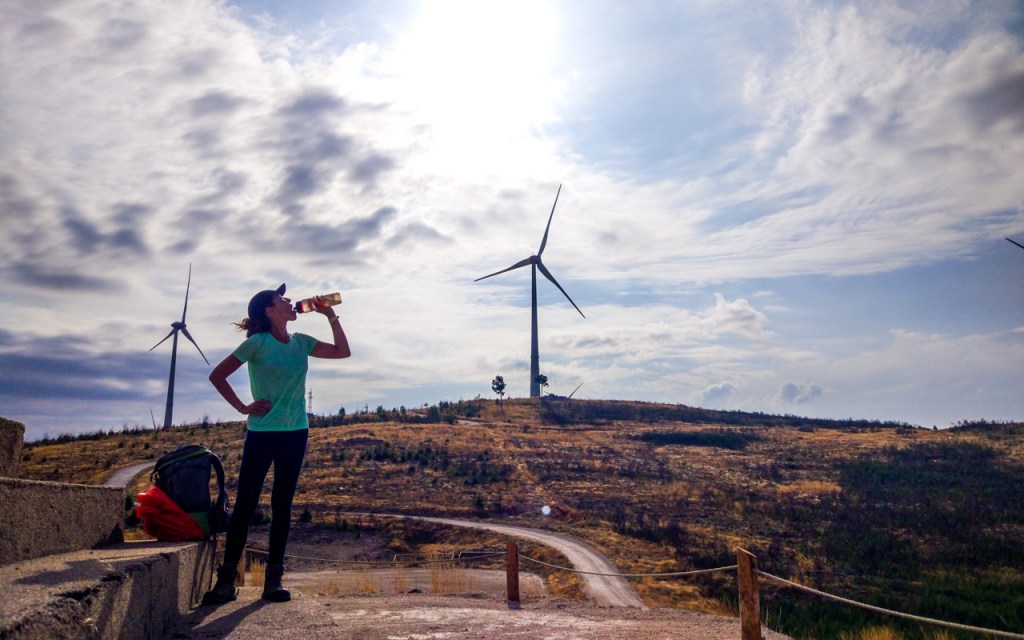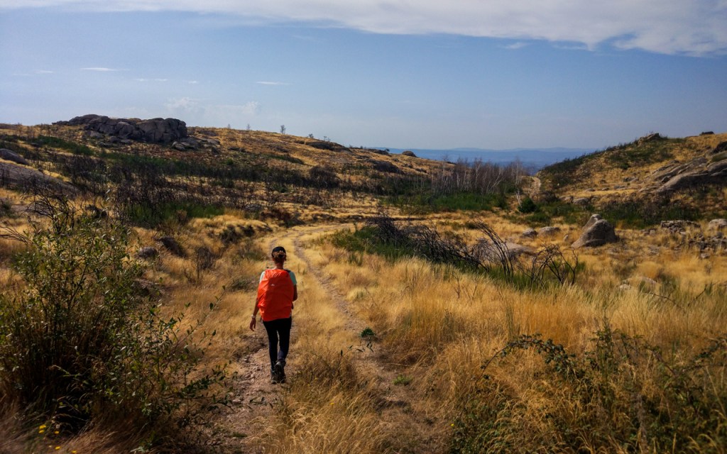 Do caminho, retenho os vários tons dourados da vegetação rasteira, o granito a despontar, aqui ainda timidamente e o som quase alienígena das eólicas. E a simpatia da senhora do café de Vela, que não nos podia vender as sandes de queijo que lhe pedimos, por isso ofereceu-as. “Não consigo deixar as pessoas com fome. Ainda para mais vêm a andar!”