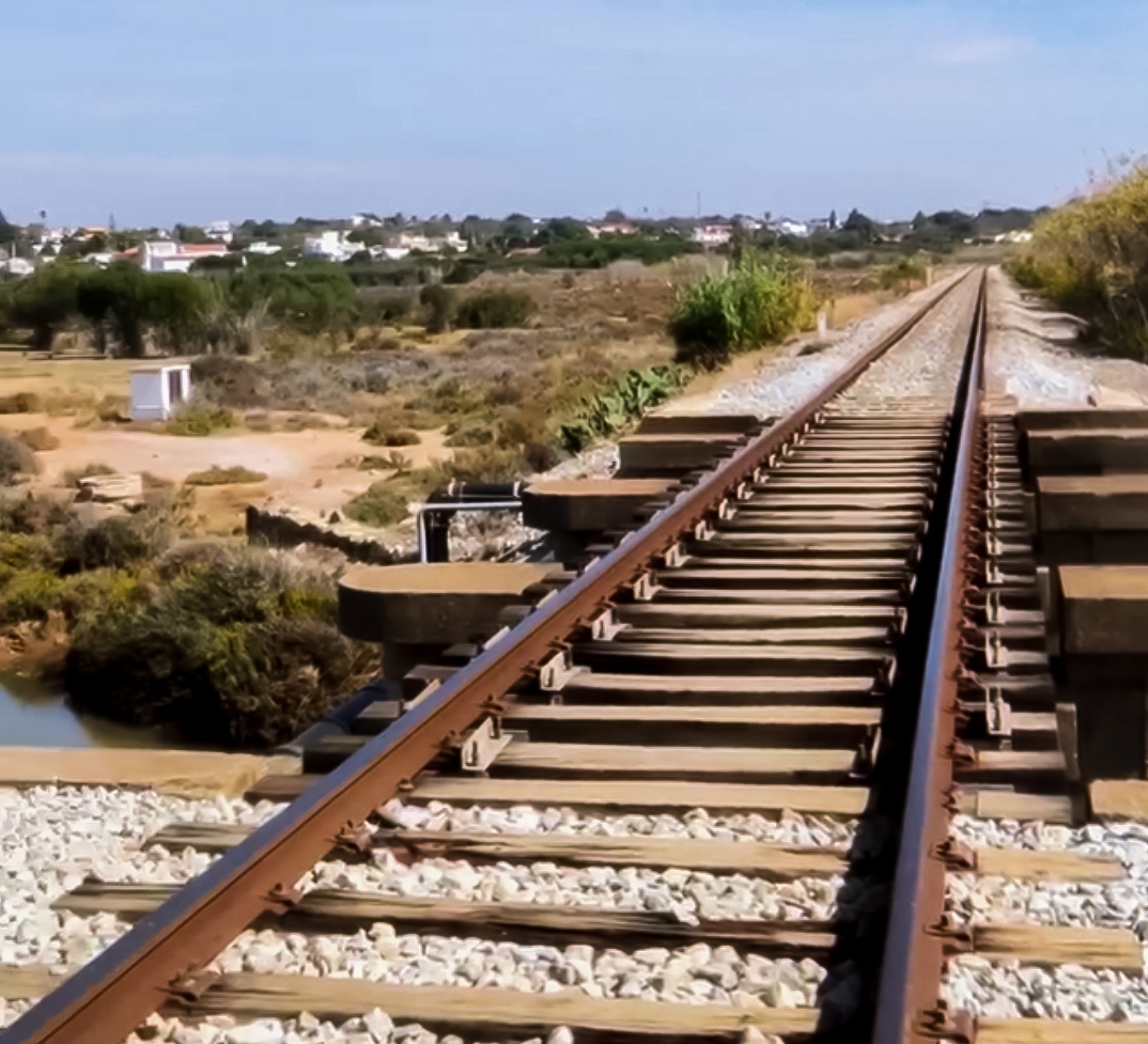 O trilho parecia continuar por um passadiço. O passadiço transformar-se-ia em ponte, para atravessar uma ribeira. Não sei se estava inacabado, ou a ser desmontado, mas o passadiço acabava no ar, antes de chegar à ribeira, que parecia funda. A única forma de passar, era através da ponte da linha de comboio, pelos carris.