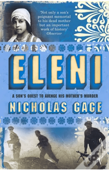 Nicholas Gage, jornalista consagrado, fugiu em criança de uma aldeia do norte da Grécia durante a guerra civil, em 1948. Num plano elaborado pela sua mãe, escapou com as suas irmãs, das montanhas para os EUA, para não ser, como tantas crianças nessa época, levado pelos comunistas para “campos de educação” do outro lado da cortina de ferro. Eleni, a mãe, ficou para trás para que eles pudessem partir, sofrendo a tortura certa e o fuzilamento. O livro, de 1983, acompanha o autor no desenterrar, revelar e honrar a história da sua mãe, dos seus carrascos e da vida nas aldeias das montanhas gregas nesse período.