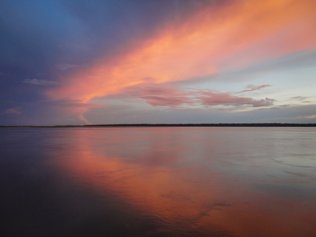 Fui alternando momentos de gratidão e aborrecimento profundo, nos seis dias e dois barcos que nos levaram de Yurimaguas a Iquitos e daí a Santa Rosa, a tripla fronteira com o Brasil e Colômbia. Vi pôres-do-sol laranja e violeta e azul como nunca tinha visto, mas o cenário ribeirinho – às vezes verde denso, às vezes plano sem vegetação, às vezes com aldeias de casas de madeira e telhados de palha, outras vezes aldeias com mercados lotados e mototáxis- começou a tornar-se repetitivo.